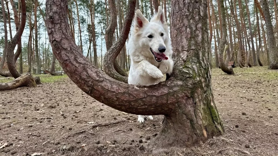 Stromy. Borovice, ale ne takové, jaké znáte. Každá z nich se hned nad zemí prudce ohýbá do strany, jako by se snažila uniknout nějaké neviditelné síle. Vytvářejí oblouky, vlny, někdy až dokonale pravidelné tvary. Vypadá to neskutečně, jako kdyby les někdo naprogramoval jinak.