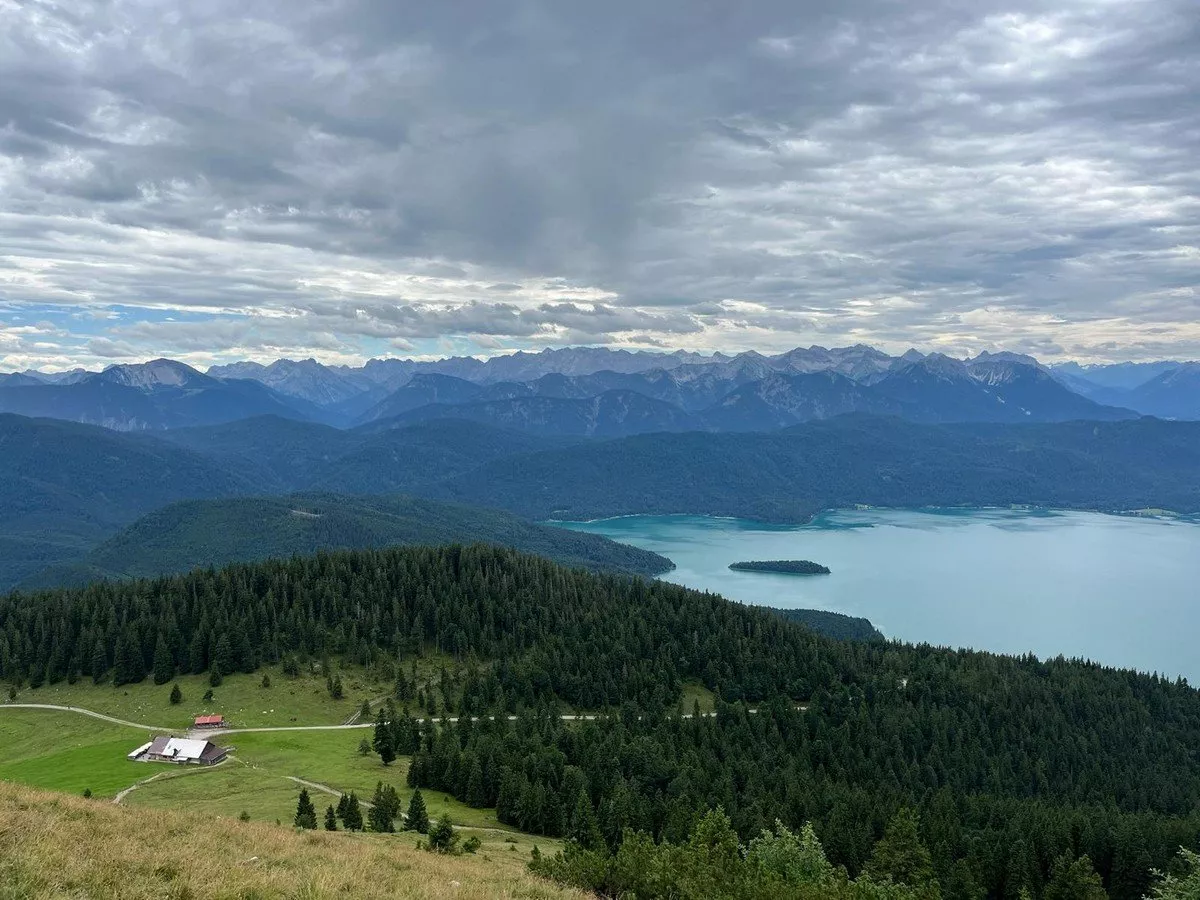 Cestou jsme se zastavili jen na asi dvou vyhlídkách, ze kterých byla vidět jen placka směrem k Mnichovu. Ty pravé horské výhledy přišly až na samotném vrcholu, ve výšce 1562 m n. m. Pohled shora na průzračná jezera Kochelsee a Walchensee jsme si chtěli tolik užít, že jsme na vrcholu zůstali dobrou půlhodinu. A to i přes to, že se během té doby zatáhlo a na chvíli i pršelo... No jo, horské počasí je vždycky nevyzpytatelné.
