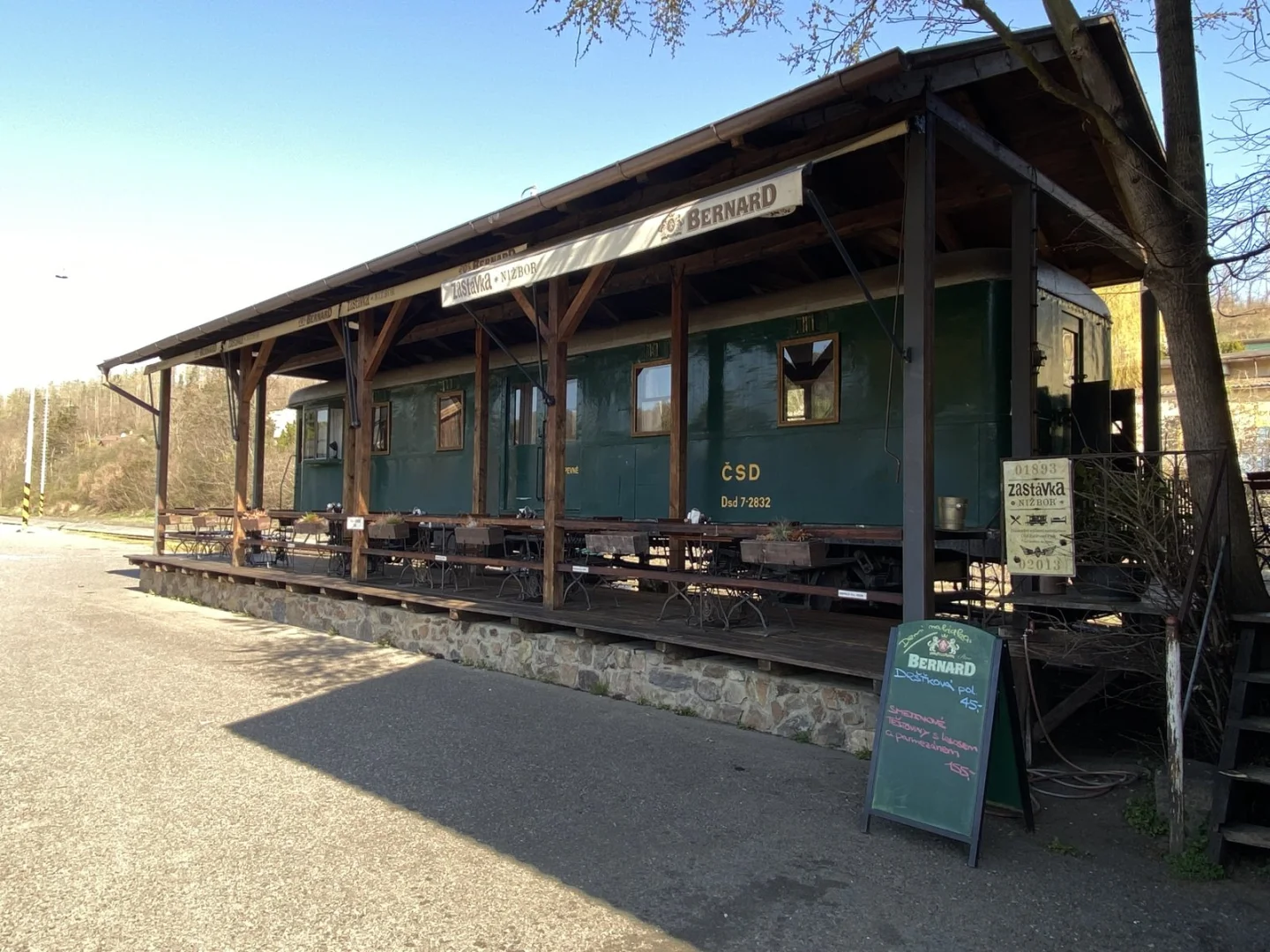 Zastávka Nižbor je slavná nádražní výletní restaurace v bývalém dřevěném skladišti z roku 1876, kterou zachránil a přestavěl herec Tomáš Hanák. Dnes je z ní stylová hospoda nabízející výborná jídla, domácí limonádu a posezení na peronu, rampách i ve vagonu. Část vagónů slouží také jako netradiční ubytování.