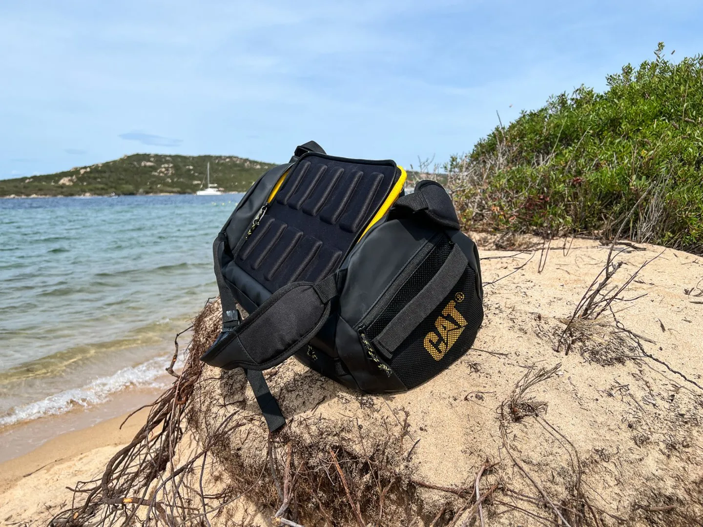 Taška na první pohled vypadá jako zajímavý univerzál a přesně to se nám nakonec líbilo nejvíce. Během cesty po Sardinii taška sloužila jako rychlé zavazadlo s nejnutnějšími věcmi na trajekt. Takové to zavazadlo, kam si před příjezdem do přístavu dáte nejdůležitější věci pro přenocování na lodi, abyste nemuseli po zaparkování ve stísněných prostorách a s brečícím dítětem někde něco hrabat v autě. Mimochodem, přesně v garáži trajektu, kde jsou auta nacpaná jedno za druhým, se velmi hodila možnost dát tašku na záda. Do volných rukou jsem pak mohl vzít dítě.